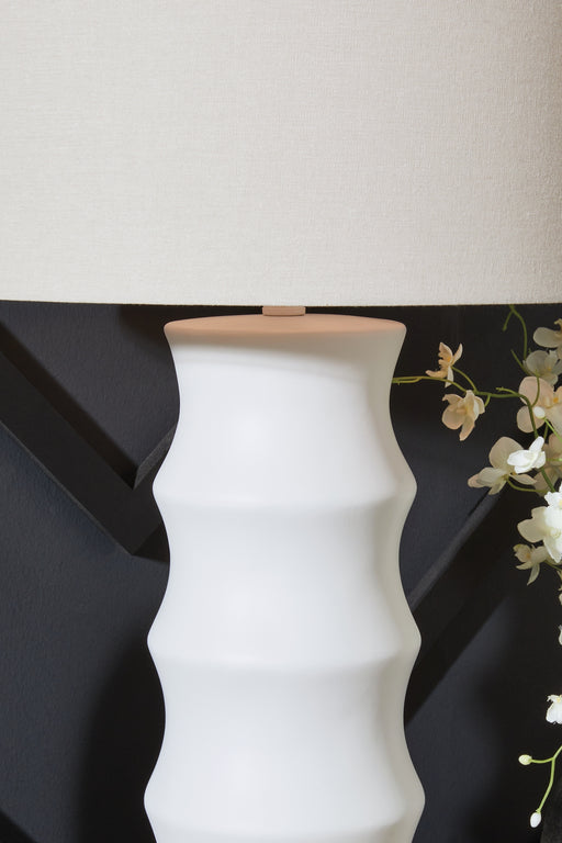 Signature Design by Ashley®Classic sophistication meets modern sensibility. The gracefully fluted base of this table lamp brings a dynamic feel to the white shade's crisp loo...