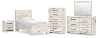 Lawroy Twin Panel Bed with Mirrored Dresser, Chest and Nightstand
