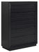 Details B768B5: Includes headboard, footboard and rails, Made with pine solids, veneers and engineered wood substrate, Textured black wood stain with waxy topcoat, Extra wide rails for a bench-like wrap around, Foundation/box spring required, sold separately, Mattress available, sold separately, Assembly required, B768B1: Includes dresser and mirror, Made with pine solids, veneers and engineered wood substrate, Textured black wood stain with waxy topcoat, Hardware-less design, 6 drawers with fully finished interiors, dovetail construction and ball-bearing side glides (top drawers felt lined), Mirror attaches to back of dresser, B768-46: Made with pine solids, veneers and engineered wood substrate, Textured black wood stain with waxy topcoat, Hardware-less design, 5 drawers with fully finished interiors, dovetail construction and ball-bearing side glides (top drawers with felt-lined bottoms), B768-92: Made with pine solids, veneers and engineered wood substrate, Textured black wood stain with waxy topcoat, Hardware-less design, 2 drawers with fully finished interiors, dovetail construction and ball-bearing side glides, 110V power supply with dual USB charging ports, Power cord included; UL Listed,
