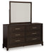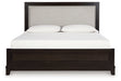 Neymorton California King Upholstered Panel Bed with Mirrored Dresser