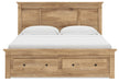 Looking to create a bedroom that feels airy and beautifully put together? This casually comfy king panel storage bed is your perfect solution. Its clean lines, replicated oak grain and on-trend natural finish exude a charming cottage-inspired feel that brightens your restful retreat. Spacious drawers with dark bronze-tone knobs stow away clothes and more. Now there’s a fresh take on country living we can get behind.