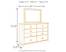 | Details | Includes dresser and mirror, Made of engineered wood (MDF/particleboard) and decorative laminate, Whitewash replicated worn through paint with authentic touch, Replicated wood grained block pattern with authentic touch, Antiqued brass-tone knocker hardware, 6 smooth-gliding drawers, Mirror attaches to back of dresser, Safety is a top priority, clothing storage units are designed to meet the most current standard for stability, ASTM F 2057 (ASTM International), Drawers extend out to accommodate maximum access to drawer interior while maintaining safety, Assembly required | |