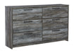 Beachy style and lots of storage go hand in hand with this dresser. Its driftwood and surfer-inspired smoky finish creates a rustic look that's perfect for setting the scene of an island getaway. Six roomy drawers give you the space needed for stowing away clothes and more. Clean lines and modern handles provide an authentic look to be admired for years to come.