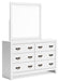 | Details | B427B2: Includes twin panel headboard, footboard, rails and slats, Made with hardwood solids, okoume veneer and MDF substrates, White finish, Foundation/box spring required, sold separately, Mattress available, sold separately, Assembly required, B427B1: Includes dresser and mirror, Made with hardwood solids, okoume veneer and MDF substrates, White finish, 6 drawers with dovetail construction and metal center guides, Hardware with dark finish, Drawer interiors are lined with a wood grain laminate for a clean, finished look, Mirror attaches to back of dresser, B427-92: Made with hardwood solids, okoume veneer and MDF substrates, White finish, 2 drawers with dovetail construction and metal center guides, Hardware with dark finish, Drawer interiors are lined with a clean wood grain laminate for a clean, finished look, | |