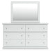 | Details | B139B47: Includes panel headboard/footboard and rails, Made with engineered wood (MDF/particleboard/plywood) and decorative laminate for the right balance of affordability and durability, Replicated solid white paint, Decorative laminate replicates natural or man-made material surfaces with consistent color, pattern and texture, Foundation/box spring required, sold separately, Mattress available, sold separately, Assembly required, B139B40: Includes dresser and mirror, Made of engineered wood (MDF/particleboard), Knobs with pewter-tone finish, Scalloped moulding, 6 smooth-operating drawers, Includes tipover restraint device, Mirror attaches to back of dresser; can also be mounted on wall horizontally or vertically, Safety is a top priority, clothing storage units are designed to meet the most current standard for stability, ASTM F 2057 (ASTM International), Drawers extend out to accommodate maximum access to drawer interior while maintaining safety, B139-46: Made of engineered wood (MDF/particleboard), Pewter-tone knobs, Scalloped moulding, 5 smooth-operating drawers, Small Space Solution, Includes tipover restraint device, Safety is a top priority, clothing storage units are designed to meet the most current standard for stability, ASTM F 2057 (ASTM International), Drawers extend out to accommodate maximum access to drawer interior while maintaining safety, B139-91: Made of engineered wood (MDF/particleboard), Pewter-tone knobs, 1 smooth-operating drawer, 1 storage cubby, Scalloped moulding, Small Space Solution, | |
