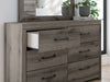 | Details | PCB2405B8: Includes panel headboard/footboard and rails, Made with engineered wood (MDF/particleboard/plywood) and decorative laminate for the right balance of affordability and durability , Weathered gray finish over replicated oak grain, Decorative laminate replicates natural or man-made material surfaces with consistent color, pattern and texture, Foundation/box spring required, sold separately , Mattress available, sold separately, Minor assembly required, PCB2405B1: Includes dresser and mirror, Made with engineered wood (MDF/particleboard/plywood) and decorative laminate for the right balance of affordability and durability , Weathered gray finish over replicated oak grain, Decorative laminate replicates natural or man-made material surfaces with consistent color, pattern and texture, Large-scale dark colored handles, 6 smooth-gliding drawers, Drawer interiors are lined with a faux linen laminate for a clean, finished look , Safety is a top priority, clothing storage units are designed to meet the most current standard for stability, ASTM F 2057 (ASTM International), Drawers extend out to accommodate maximum access to drawer interior while maintaining safety, Mirror attaches to back of dresser; can also be mounted on wall horizontally or vertically , Minor assembly required, | |