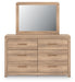 Kinlanni Queen Upholstered Panel Bed, Dresser, Mirror and Nightstand