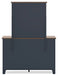 | Details | B414B2: Includes panel headboard, footboard, rails and slats, Made with hardwood solids, mindi wood veneer and MDF substrates, Two-tone finish features a dark slate blue with a light brown wood-tone top, Foundation/box spring required, sold separately, Mattress available, sold separately, Assembly required, B414B1: Includes dresser and mirror, Made with hardwood solids, mindi wood veneer and MDF substrates, Two-tone finish features a dark slate blue with light brown wood-tone top, Nickel-tone metal knobs, 6 drawers with fully finished interior, dovetail construction and heavy duty ball-bearing side glides, Mirror attaches to back of dresser, B414-45: Made with hardwood solids, mindi wood veneer and MDF substrates, Two-tone finish features a dark slate blue with a light brown wood-tone top, Nickel-tone metal knobs, 4 drawers with fully finished interior, dovetail construction and heavy duty ball-bearing side glides, B414-92: Made with hardwood solids, mindi wood veneer and MDF substrates, Two-tone finish features a dark slate blue with a light brown wood-tone top, Nickel-tone metal knobs, 2 drawers with fully finished interior, dovetail construction and heavy duty ball-bearing side glides, | |