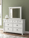 | Details | PCB823B5: Includes headboard/footboard panels, posts and poster rails , Made with hardwood solids, veneers and MDF substrates , Side rails feature laminated solid hardwood slat support rails (or LVL) with glued and screwed blocking for added strength, Rubbed antiqued white finish , Foundation/box spring required, sold separately, Mattress available, sold separately , Assembly required, PCB823B1: Includes dresser and mirror, Dresser made with hardwood solids, veneers and MDF substrates , Mirror made with solid wood, Rubbed antiqued white finish, Metal hardware with pewter-tone finish, 8 smooth-gliding drawers with fully finished interiors, French/English dovetail construction and heavy-duty ball-bearing side glides, Top drawers felt lined, Mirror attaches to back of dresser, | |