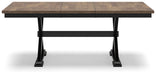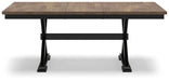 Details Made with hardwood solids, mango wood veneer and MDF substrate, 2-tone finish (butcher block mango veneer top with deep brown wood tone finish; frame with warm satin black finish), Self-storing butterfly leaf, Seats up to 8, Assembly required