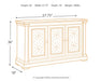 Need a stylish space to store dinnerware and all your dining room essentials? This server is a dream come true, with four adjustable shelves that offer large capacity and a spacious top that's perfect for setting a buffet. Embellished with the casual appeal of three latticed doors, an attractive planked top with a weathered oak finish and a lightly distressed white finish throughout, this vintage look will serve up elegance for years to come.