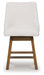 This counter height swivel bar stool sits comfortably at the intersection of modern lodge and farmhouse aesthetics. Your warm and welcoming disposition is reflected in its charming architectural elements and neutral textural fabric. Even with its poise, the stool remains practical. Its cushioned seat is covered in easy-clean Next-Gen Nuvella™ performance fabric, defining your dining room with reliable function and style.