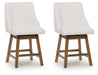 | Details | Made with solid wood frame, Light brown glazed finish, Polyester upholstery, Next-Gen Nuvella is a performance fabric that is soft, easy to clean, stain-resistant and durable, Clean fabric with mild soap and water, let air dry; for stubborn stains, use a solution of 4 oz. bleach to 28 oz. water, Foam cushioned seat with webbed foundation, 360-degree swivel, Assembly required | |