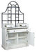| Details | Includes baker's rack base and hutch, Made with hardwood solids, mango wood veneer, MDF substrate and metal , Antiqued white finish, Frame with black finish, Dark pewter-tone knobs , Metal hutch with 2 wood shelves, 2 single-door cabinets (each with one shelf), 3 drawers with felt lining , 6 small hooks for hanging mugs and small accessories, Assembly required | |