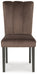 This dining chair reflects your highly contemporary point of view. Its ultra-soft velvet upholstery in chocolate brown is a feast for the senses. Channel stitching details give the chair an elevated, tailored feel. What a delicious choice for an elegantly elevated dining room.