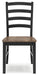 Details Made with solid wood frame; mango veneer and MDF substrate seat, 2-tone finish (seat with deep brown wood tone finish; frame with warm satin black finish), Ladderback design, Contoured seat, Assembly required