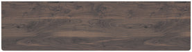 Details Made with engineered wood (MDF/particleboard/plywood) and decorative laminate for the right balance of affordability and durability, Rich brown finish over replicated walnut wood grain with authentic touch, Decorative laminate replicates natural or man-made material surfaces with consistent color, pattern and texture, Black drawer pulls, 2 open shelves, 2 smooth-gliding drawers, Drawer interiors are lined with a faux linen laminate for a clean, finished look, Ambient lighting under top; 3 brightness settings, Power cord included; UL Listed, Minor assembly required