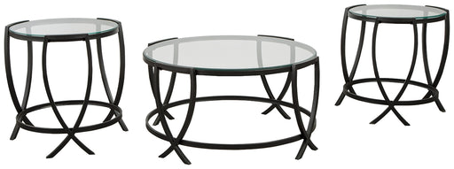 Signature Design by Ashley®Round up a sleek, modern look with this table set. The rounded black glass tops offer the perfect perch for drinks, snacks or decor displays. Shape...