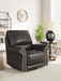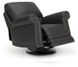 | Details | Pull tab reclining motion, Corner-blocked frame with metal reinforced seat, Attached cushions, High-resiliency foam cushions wrapped in poly fiber, Faux leather upholstery, Decorative turned legs with faux wood finish, 360-degree swivel, Gentle rocking motion | |