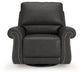 Everyone can have the best seat in the house with this swivel glider recliner. Its nailhead trim puts the finishing touches on the traditional roll arms you love. The recliner's comfy, durable cushions—wrapped in a rustic yet sophisticated faux leather—keep you feeling relaxed, while its turned legs show that style and quality flow from top to bottom. Plus the smooth reclining motion and 360-degree swivel keep you in the flow of conversation.