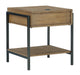 Beautiful to behold, this urban contemporary end table is loaded with high style and convenience. The wood sports a light, natural-looking finish that provides a dramatic contrast to the black metal frame. Its open cubby is perfect for stowing away books and magazines. A cleverly placed AC/USB charging port on the top lets you power up without moving a muscle.