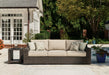 | Details | All-weather resin wicker handwoven over rust-free aluminum frame, Nuvella® (solution-dyed polyester) high-performance fabric, Stainless steel hardware, 4 throw pillows, Designed to withstand the harsh elements of the outdoors, Clean fabric with mild soap and water, let air dry; for stubborn stains, use a solution of 4 oz. bleach to 28 oz. water, Assembly required | |