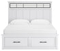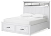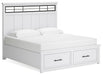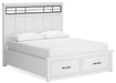 This queen panel storage bed delivers casual style with substance. An inset metal detail on the headboard displays a unique take on modern farmhouse design. The bed's sturdy silhouette, classic white finish and black pulls exude a comfortably cozy vibe in your soothing sanctuary. Storage drawers are spacious enough for all your essentials.