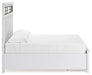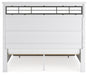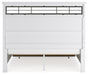 | Details | Includes panel headboard, storage footboard, rails and roll slats, Footboard made with hardwood solids, MDF substrates and butcher block oak veneer, Headboard and rails made with hardwood solids and MDF substrates, White finish, Headboard with inset black metal barn sash, 2 drawers in footboard with fully finished interior, dovetail construction and ball-bearing side glides, Pulls with matte black finish, Bed does not require a foundation/box spring, Mattress available, sold separately, Assembly required | |