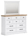 | Details | B844B2: Includes panel headboard, storage footboard, rails and roll slats, Footboard made with hardwood solids, MDF substrates and butcher block oak veneer, Headboard and rails made with hardwood solids and MDF substrates, White finish, Headboard with inset black metal barn sash, 2 drawers in footboard with fully finished interior, dovetail construction and ball-bearing side glides, Pulls with matte black finish, Bed does not require a foundation/box spring, Mattress available, sold separately, Assembly required, B844B1: Includes dresser and mirror, Made with hardwood solids, MDF substrates and butcher block oak veneer, Dresser with 2-tone finish (white finish; butcher block oak veneer with natural finish), Pulls with matte black finish, 10 spacious drawers with fully finished interiors (top drawers felt lined), dovetail construction and ball-bearing side glides , Drawers with inset picture fronts, Mirror attaches to back of dresser, B844-93: Made with hardwood solids, MDF substrates and butcher block oak veneer, 2-tone finish (white finish; butcher block oak veneer with natural finish), Pulls with matte black finish, 3 spacious drawers with fully finished interiors (top drawers felt lined), dovetail construction and ball-bearing side glides, 110V power supply with dual USB charging ports, Power cord included; UL Listed, Drawers with inset picture frame fronts, | |
