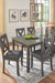 Perfect portion. Striking a simply chic pose, this dining set is styled with fascinating flair. Subtle gray wash finish gives the clean-lined design a casually cool sensibility, while the chair’s plushly cushioned seat in a soft, neutral upholstery adds to the allure.