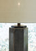 Why settle for standard light fixtures when this table lamp adds so much warmth and style? The hexagon-shaped lamp features an antiqued pewter-tone and black finish topped with a drum shade. Whether lighting a living area, bedroom or entryway, this piece will steal the spotlight wherever it lands.
