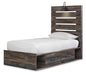 | Details | Includes headboard, footboard, platform rails, side storage unit and wood roll slats, Made of engineered wood (MDF/particleboard) and decorative laminate, Brown rustic finish with burnt orange and teal accents in a replicated wood grain with authentic touch, 2 drawers and 2 open cubbies that each accommodate 10.5"W x 10.5"D x 11"H cube storage bin (not provided), 2 decorative sconce LED lights, each runs on 3AA batteries, 2 USB charging ports, Power cord included; UL Listed, Bed does not require additional foundation/box spring; accommodates most zero clearance adjustable bases with the addition of a bunkie board, Dark-tone industrial hardware, Assembly required, Small Space Solution, Mattress available, sold separately | |