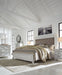 Give your retreat vintage charm with this queen upholstered panel bed. In a beautifully distressed whitewash finish, you'll love the headboard's grand style featuring an inset button tufted upholstery cushion. Generously scaled moulding from top to bottom, along with bun feet and nailhead trim give this bed character—evoking the feel of a quaint cottage escape.