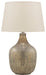 Evoke a vintage vibe in a thoroughly modern way with this glass table lamp. The gray-blue and light goldtone of its mercury-glass finish reflects a primitive aesthetic, juxtaposed with a contemporary jar shape. Add texture, interest and a certain je ne sais quois to your space for a look that’s all your own.