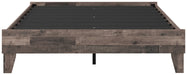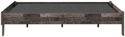 Streamlined design and a stunning finish come together in one simply extraordinary bed. This queen panel bed is sure to impress with platform styling and a rich brown finish over replicated pine grain texture. Its mid-century profile is a nod to the past, while the updated finish keeps it solidly in the present.
