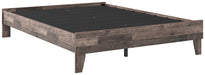 | Details | Queen platform bed (does not include headboard), Includes footboard, rails and platform, Made with engineered wood (MDF/particleboard/plywood) and decorative laminate for the right balance of affordability and durability, Rustic butcher block finish over replicated pine grain with authentic touch, Bed does not require additional foundation/box spring; accommodates most zero clearance adjustable bases, Mattress available, sold separately, Assembly required | |