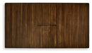 Details Made with hardwood solids, select acacia veneers and engineered wood, Gently distressed and burnished dark brown finish, Self-storing butterfly leaf is a flexible, space-saving solution, Leaf folds away under table top when not in use, Seats up to 8, Assembly required