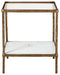 Classic in design with a dash of textural appeal, this accent table provides both flair and function. The glass tabletop offers the perfect perch for a lamp, while the white marble lower shelf is ideal for resting trendy coffee table books and other decorative pieces. An antiqued brass-tone finish on the frame has a rustically luxe look that remains versatile, suiting spaces from casual to contemporary.